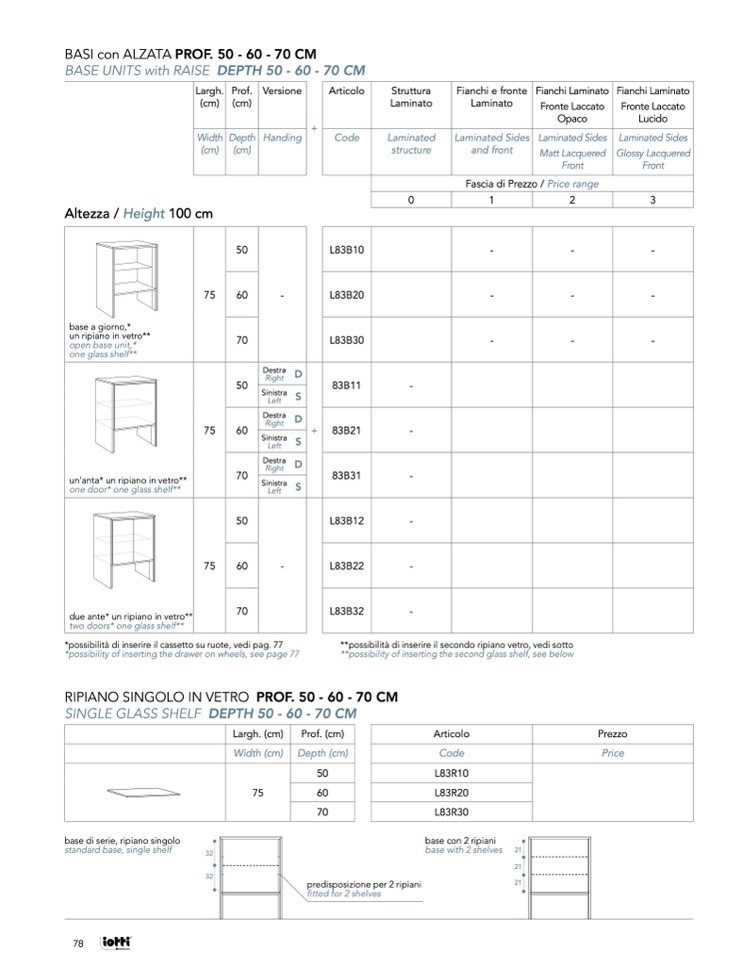 *possibility of inserting the drawer on wheels, see page 77