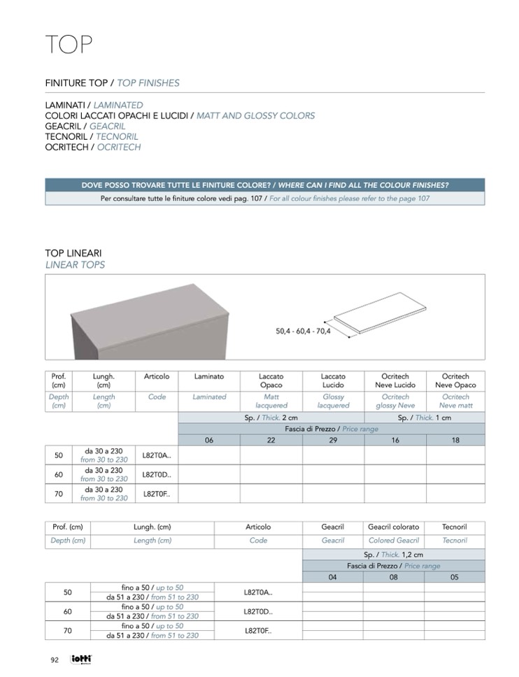 Per consultare tutte le finiture colore vedi pag. 107 / For all colour finishes please refer to the page 107