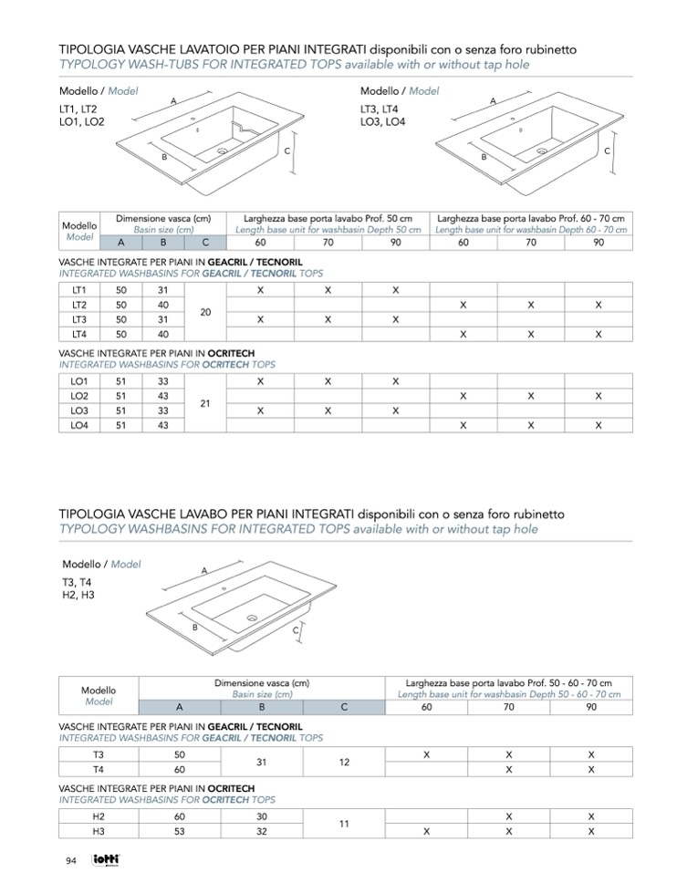 INTEGRATED WASHBASINS FOR OCRITECH TOPS