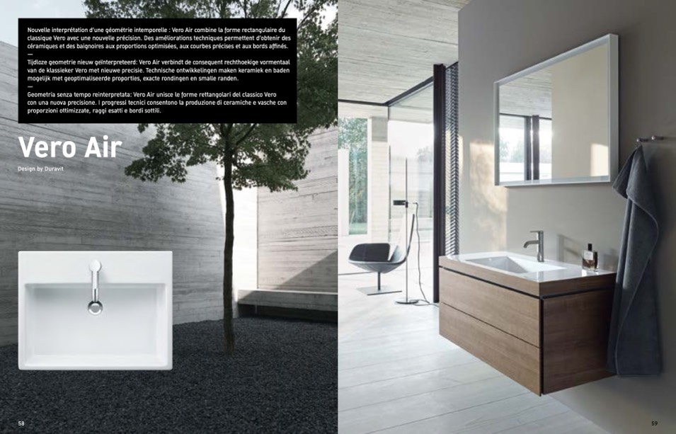 van de klassieker Vero met nieuwe precisie. Technische ontwikkelingen maken keramiek en baden