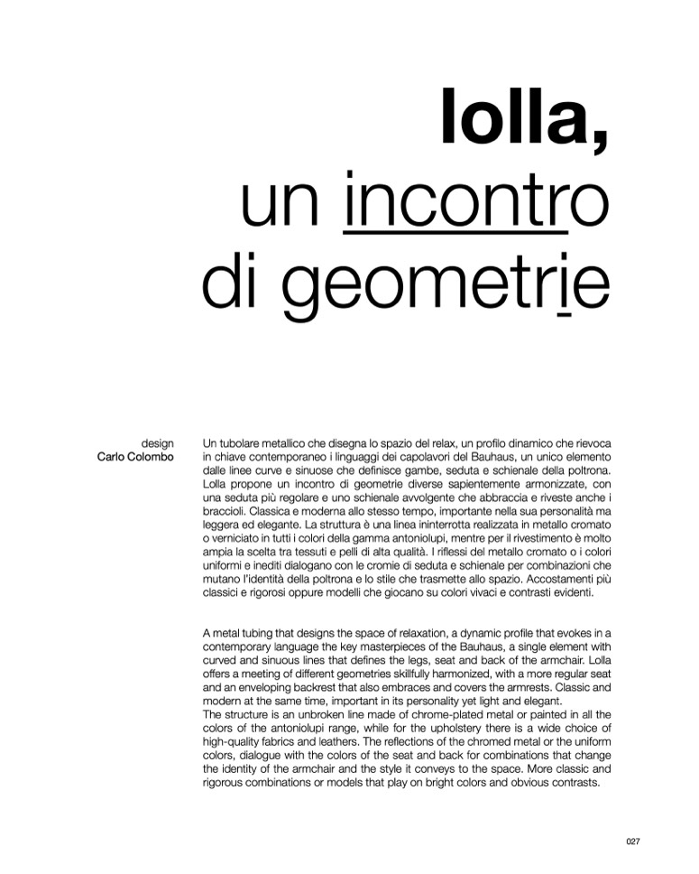 curved and sinuous lines that defines the legs, seat and back of the armchair. Lolla
