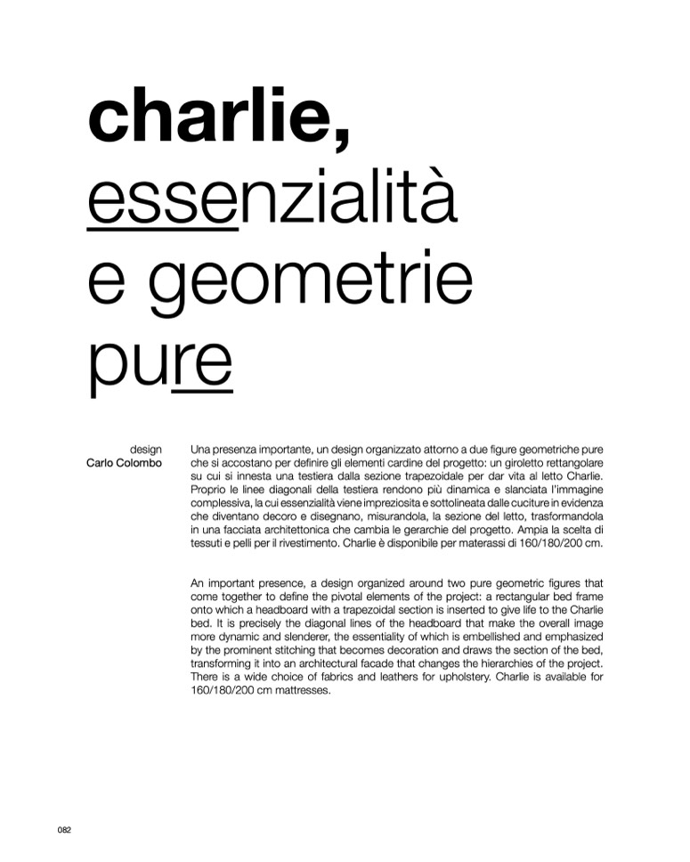 su cui si innesta una testiera dalla sezione trapezoidale per dar vita al letto Charlie.