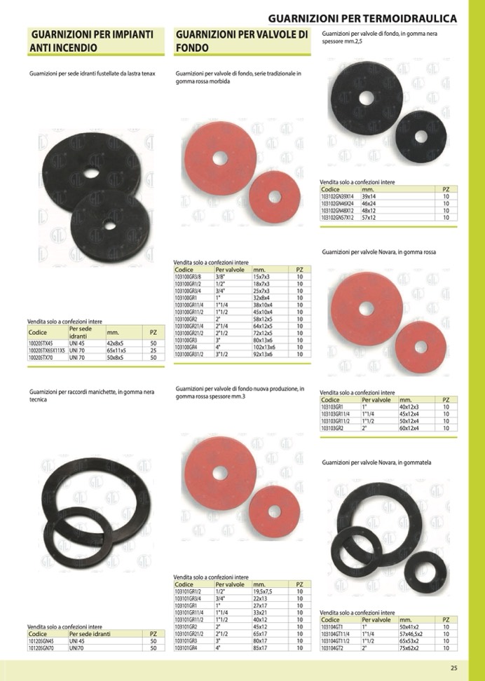 Guarnizioni per valvole di fondo, serie tradizionale in