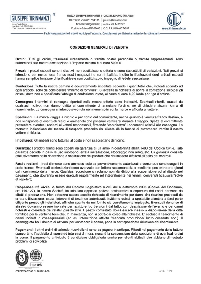 Resi e reclami: I resi di merce sono ammessi solo se preventivamente autorizzati e comunque sono eseguiti in