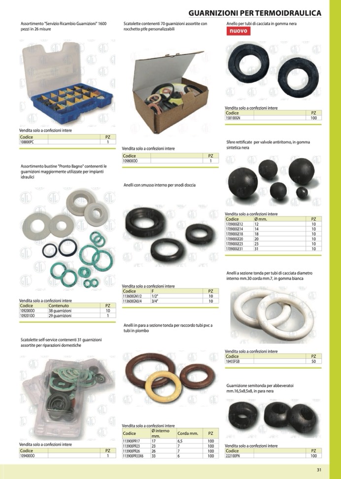 Scatolette self-service contenenti 31 guarnizioni