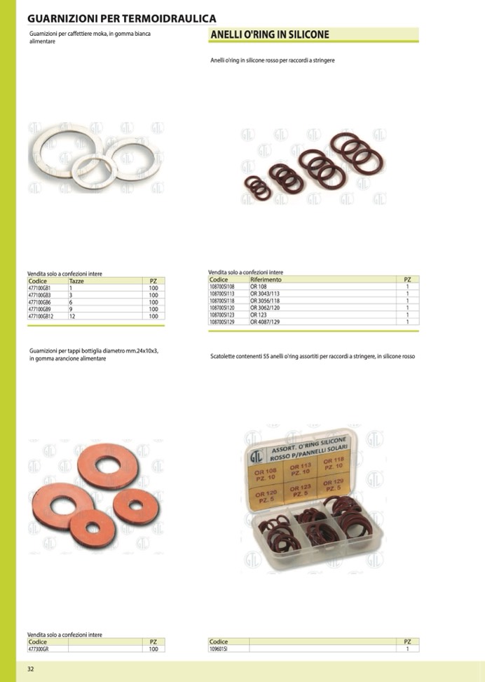 Scatolette contenenti 55 anelli o'ring assortiti per raccordi a stringere, in silicone rosso