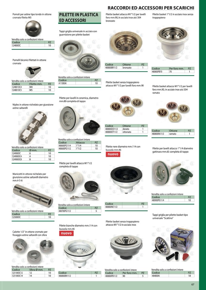 Pilette per lavelli attacco 1"1/4 diametro