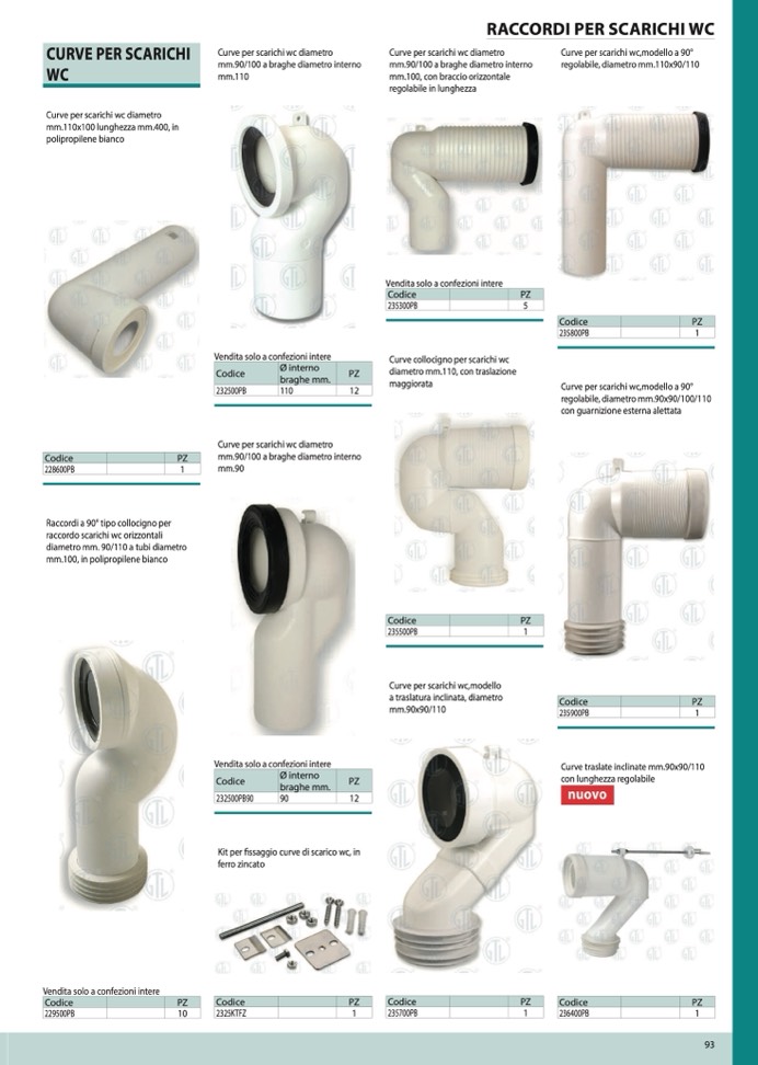 Curve per scarichi wc diametro