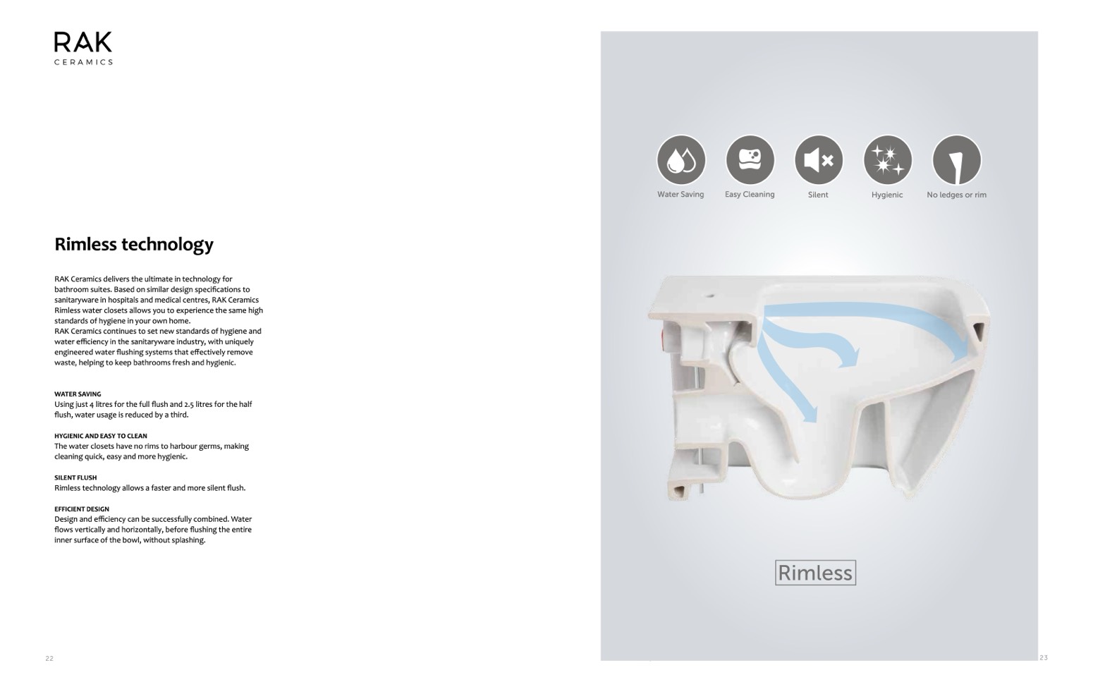Rimless technology allows a faster and more silent flush.