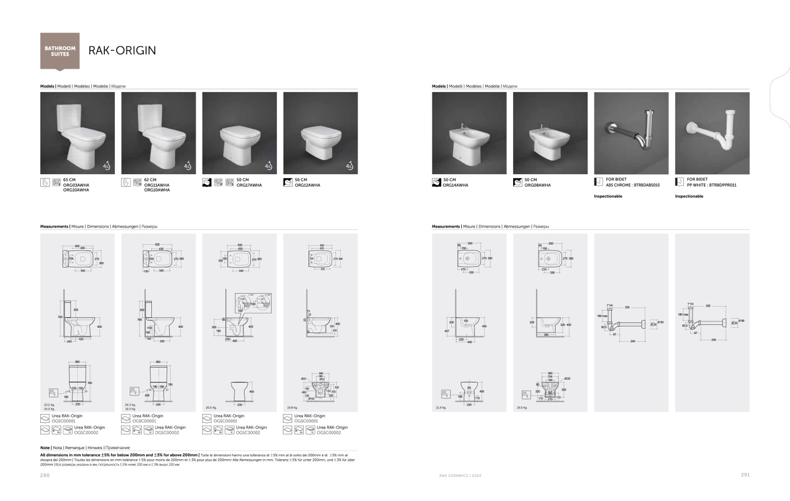 Measurements | Misure | Dimensions | Abmessungen | Размеры