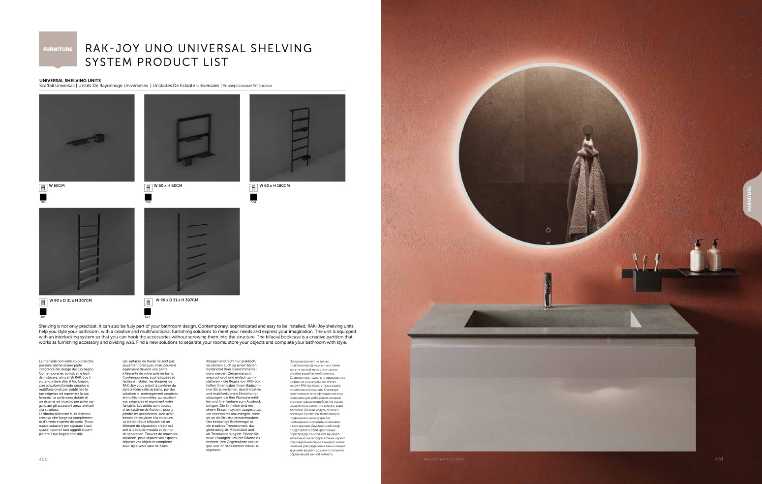 Shelving is not only practical: it can also be fully part of your bathroom design. Contemporary, sophisticated and easy to be installed, RAK-Joy shelving units