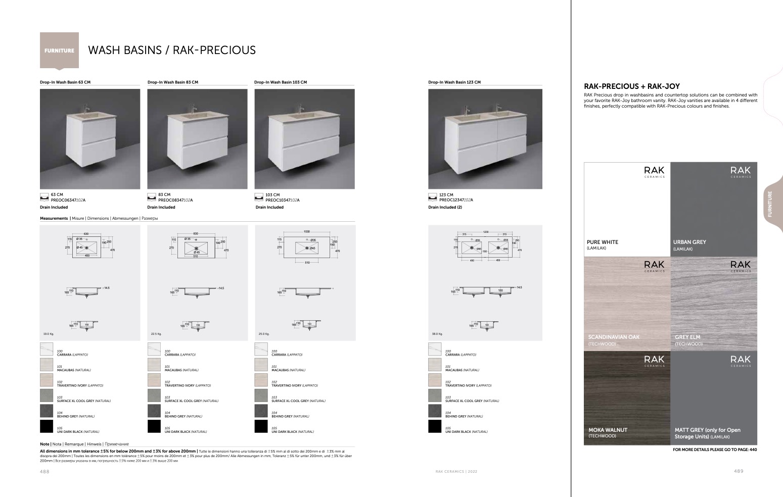 finishes, perfectly compatible with RAK-Precious colours and finishes.