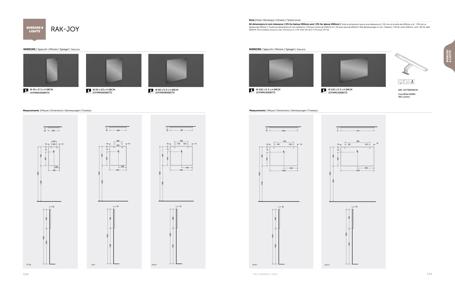 Measurements | Misure | Dimensions | Abmessungen | Размеры