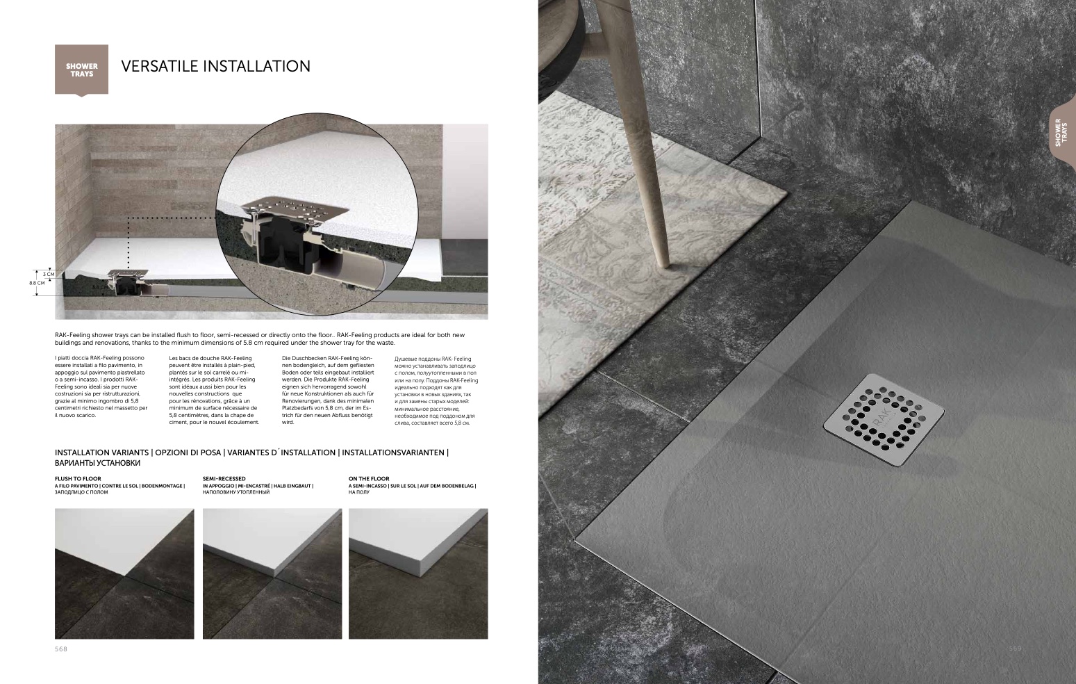 flush to floor, semi-recessed or directly onto the floor.. RAK-Feeling products are ideal for both new
