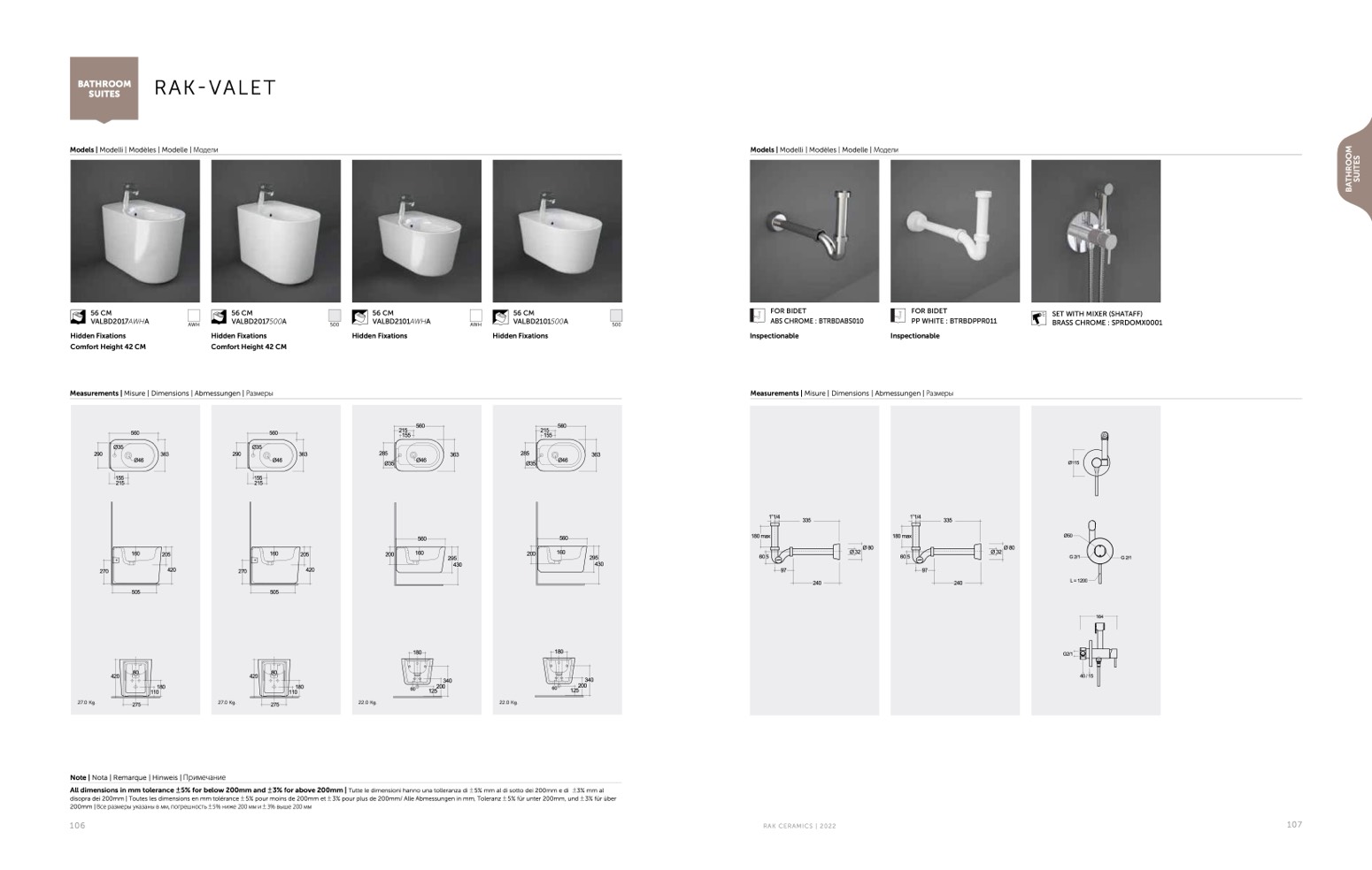 disopra dei 200mm | Toutes les dimensions en mm tolérance 5% pour moins de 200mm et 3% pour plus de 200mm/ Alle Abmessungen in mm, Toleranz