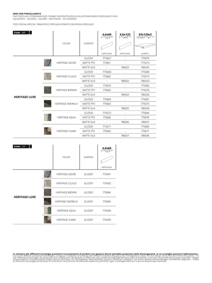 fferenti tecnologie produttive l’accostamento di prodotti con spessori diversi potrebbe presentare delle disomogeneità, se ne sconsiglia pertanto l’abbinamento./