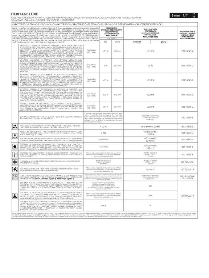 CARATTERISTICHE TECNICHE - TECHNICAL CHARACTERISTICS - CARACTERISTIQUES TECHNIQUES - TECHNISCHE EIGENSCHAFTEN - CARACTERÍSTICAS TÉCNICA