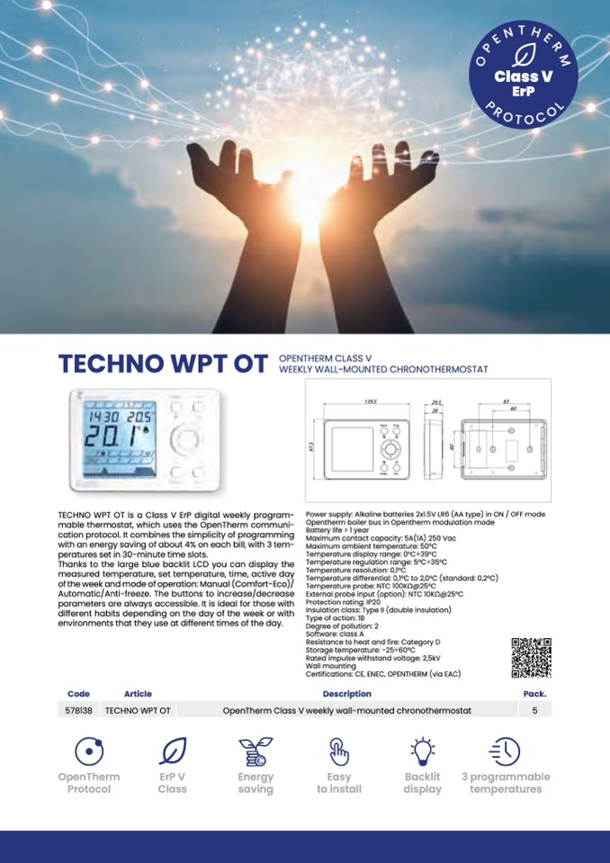 OpenTherm Class V weekly wall-mounted chronothermostat