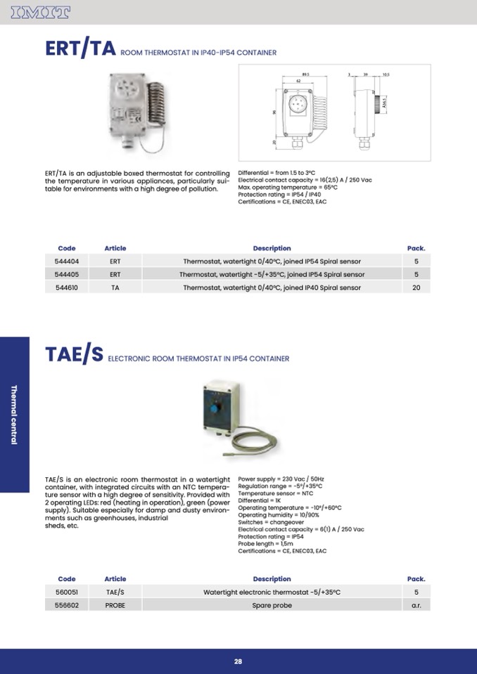 ROOM THERMOSTAT IN IP40-IP54 CONTAINER
