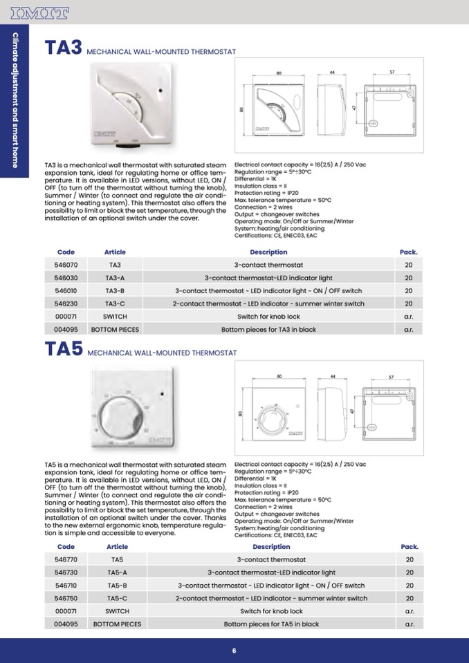 MECHANICAL WALL-MOUNTED THERMOSTAT