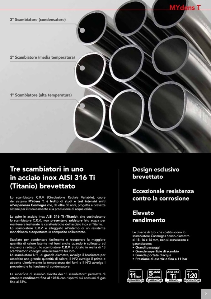 La superficie di scambio elevata dei “3 scambiatori” permette di