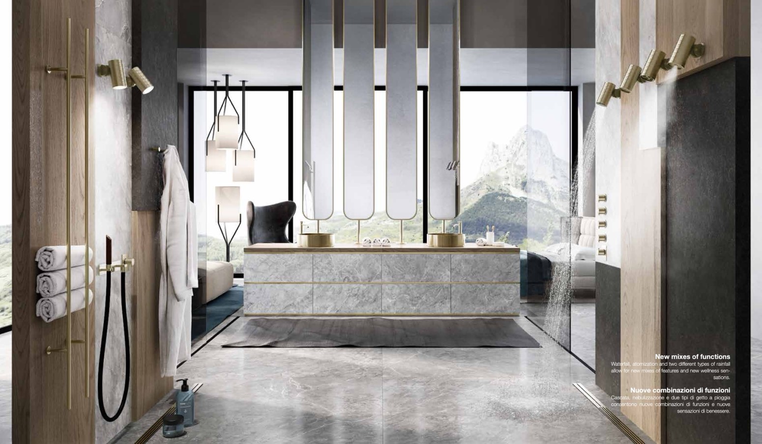 Cascata, nebulizzazione e due tipi di getto a pioggia