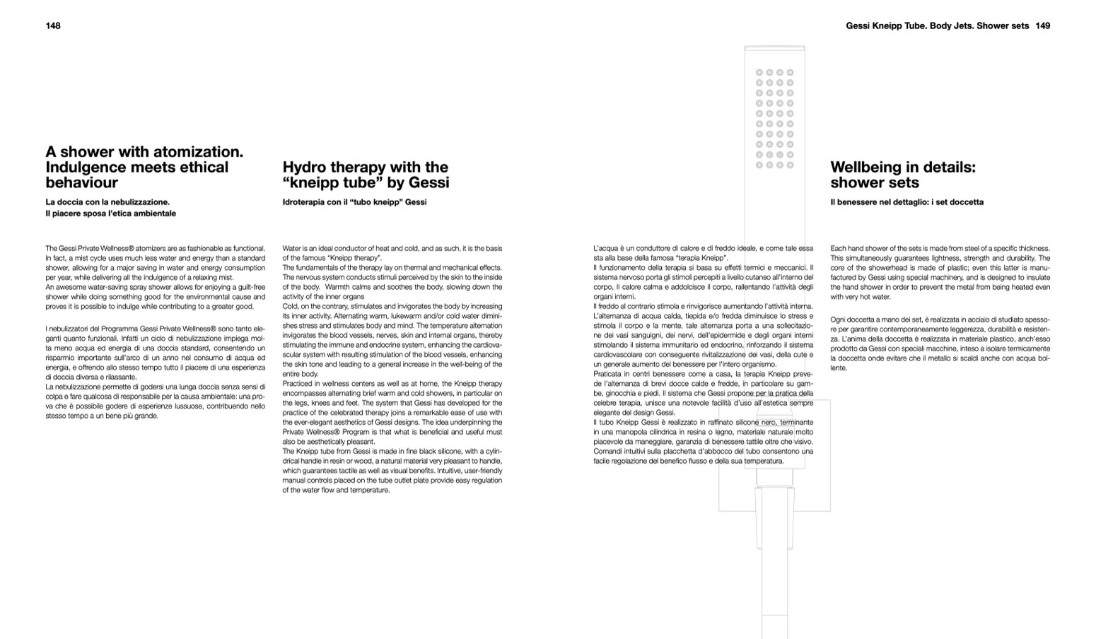 the legs, knees and feet. The system that Gessi has developed for the
