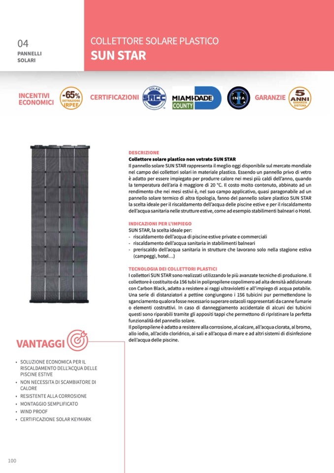 pannello solare termico di altra tipologia, fanno del pannello solare plastico SUN STAR