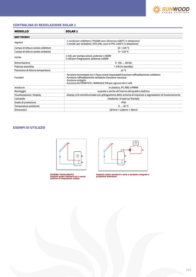 - funzione termostato con 3 fasce orarie impostabili funzione raffreddamento collettore
