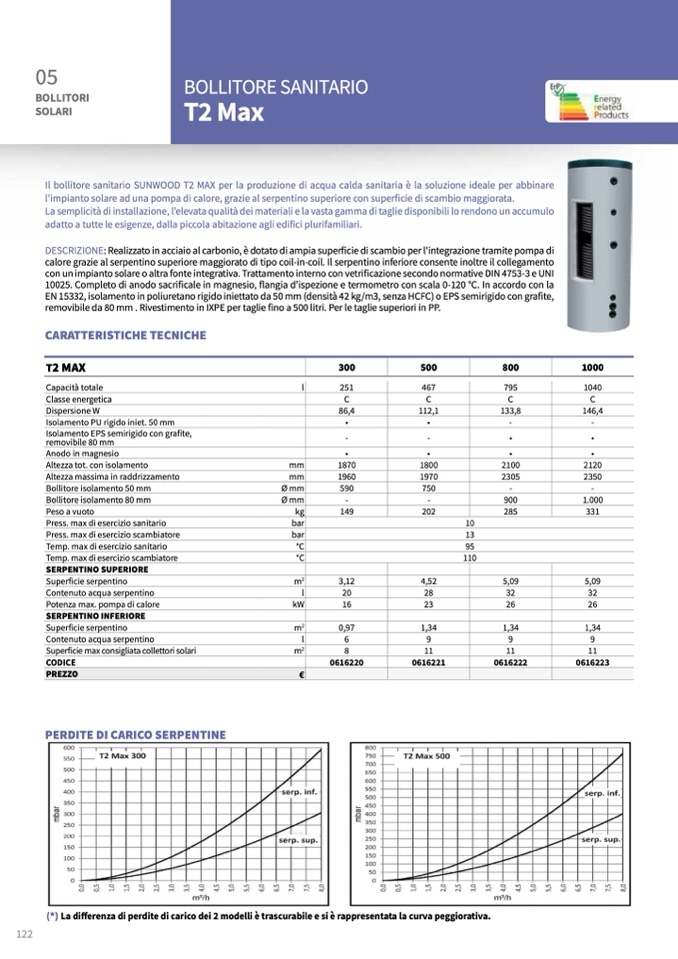 Il bollitore sanitario SUNWOOD T2 MAX per la produzione di acqua calda sanitaria è la soluzione ideale per abbinare