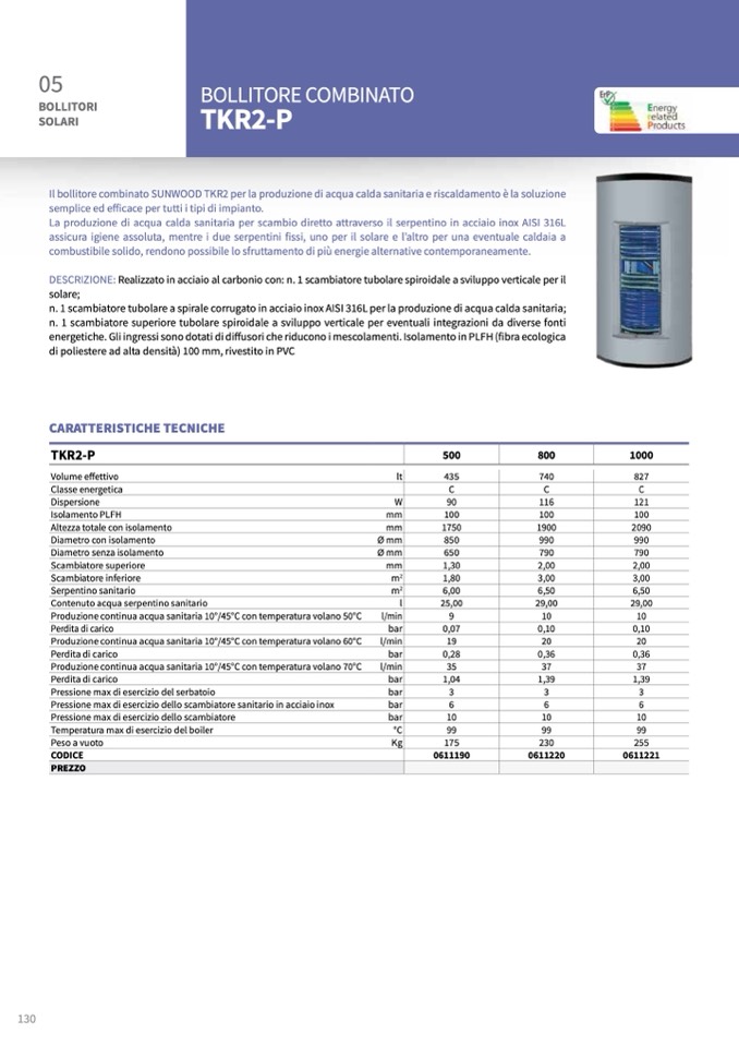 assicura igiene assoluta, mentre i due serpentini fissi, uno per il solare e l’altro per una eventuale caldaia a