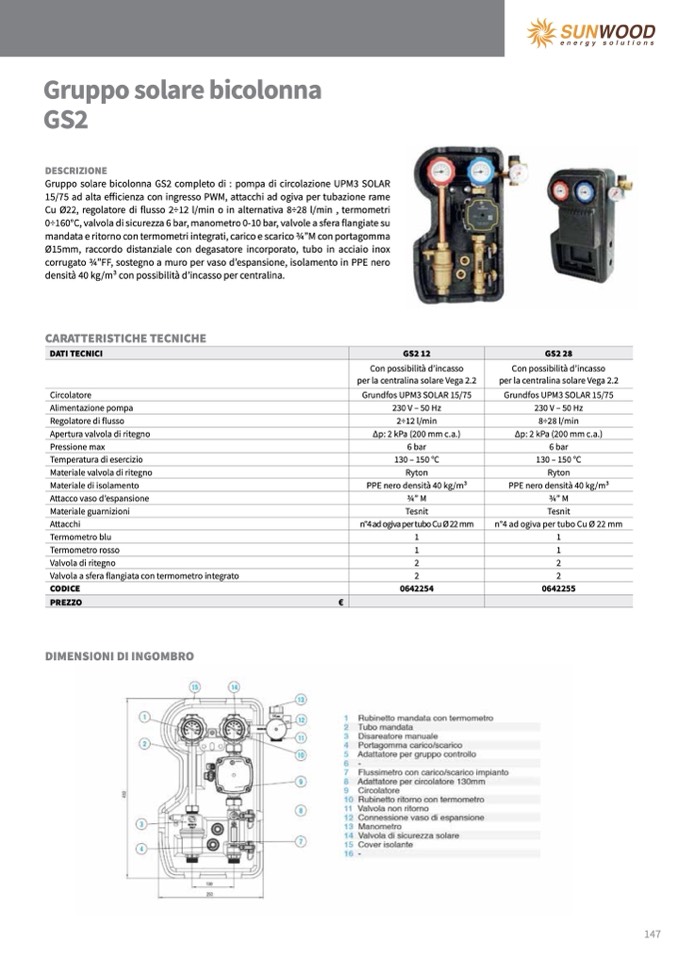 Gruppo solare bicolonna GS2 completo di : pompa di circolazione UPM3 SOLAR