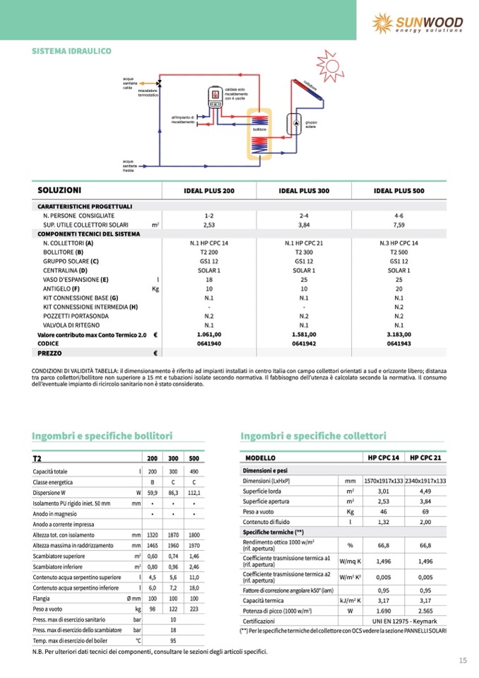 À TABELLA: il dimensionamento è riferito ad impianti installati in centro Italia con campo collettori orientati a sud e orizzonte libero; distanza