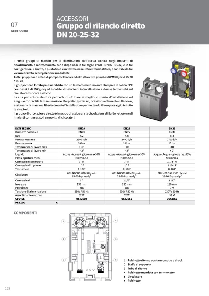 Tutti i gruppi sono dotati di pompa elettronica ad alta efficienza grundfos UPM3 Hybrid 15-70