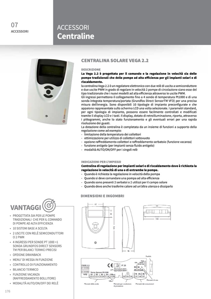 la centralina Vega 2.2 è un regolatore elettronico con due relè di uscita a semiconduttore