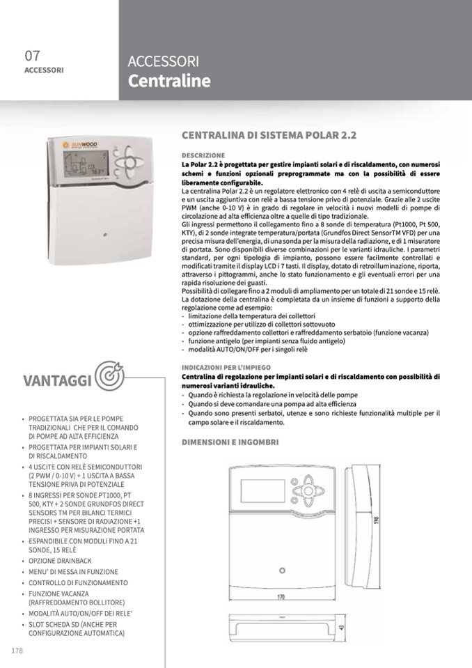 La Polar 2.2 è progettata per gestire impianti solari e di riscaldamento, con numerosi