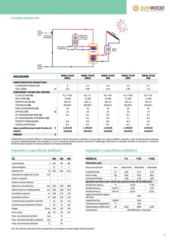 À TABELLA: il dimensionamento è riferito ad impianti installati in centro Italia con campo collettori orientati a sud e orizzonte libero; distanza