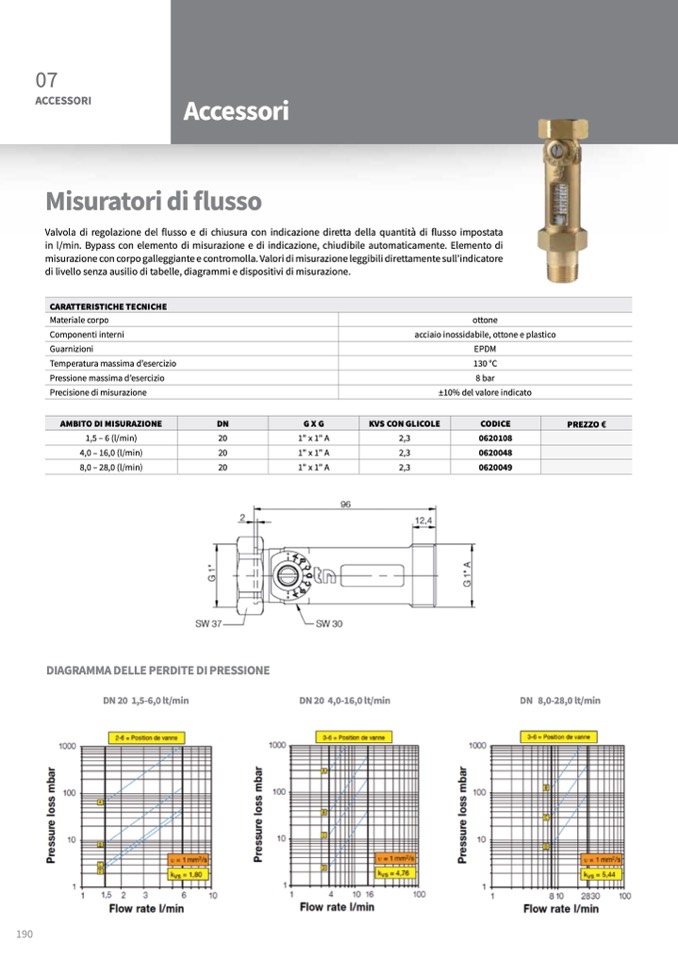 in l/min. Bypass con elemento di misurazione e di indicazione, chiudibile automaticamente. Elemento di