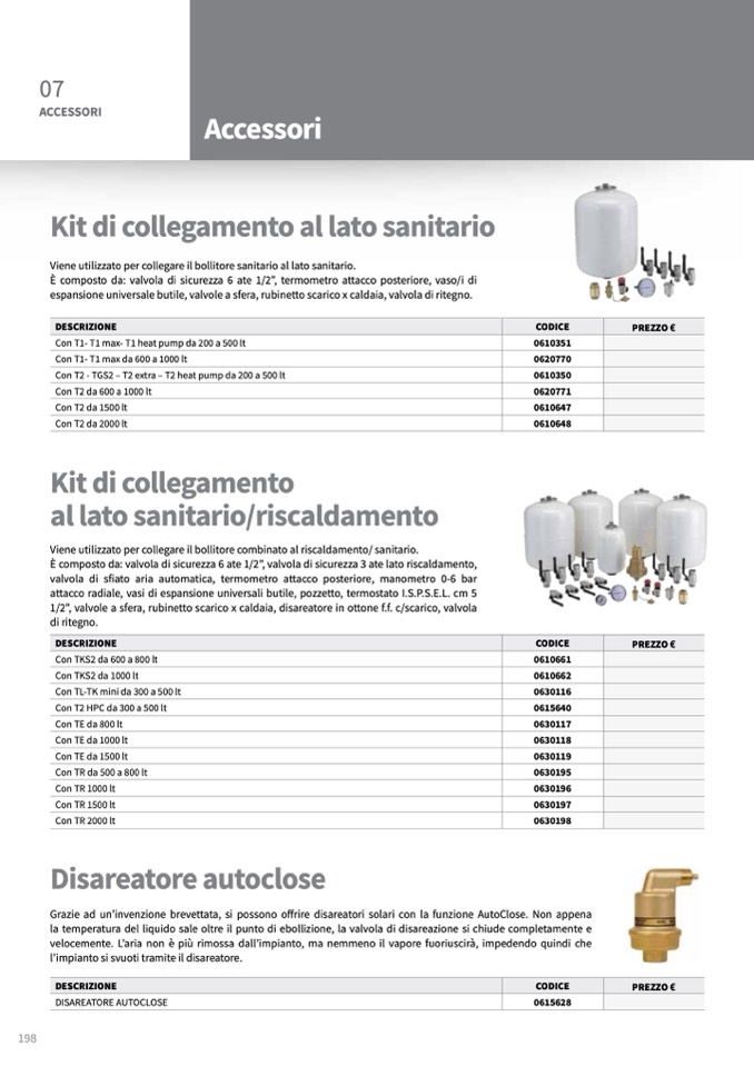 È composto da: valvola di sicurezza 6 ate 1/2”, termometro attacco posteriore, vaso/i di