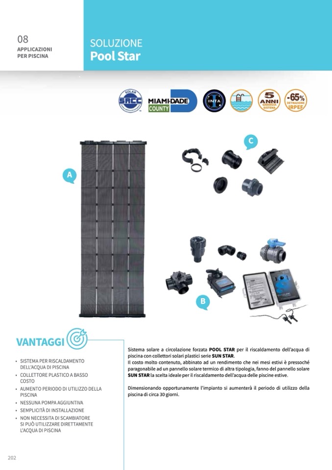 Sistema solare a circolazione forzata POOL STAR per il riscaldamento dell’acqua di