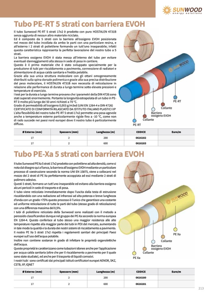 Il tubo Sunwood PE-RT 5 strati 17x2 è prodotto con puro HOSTALEN 4731B