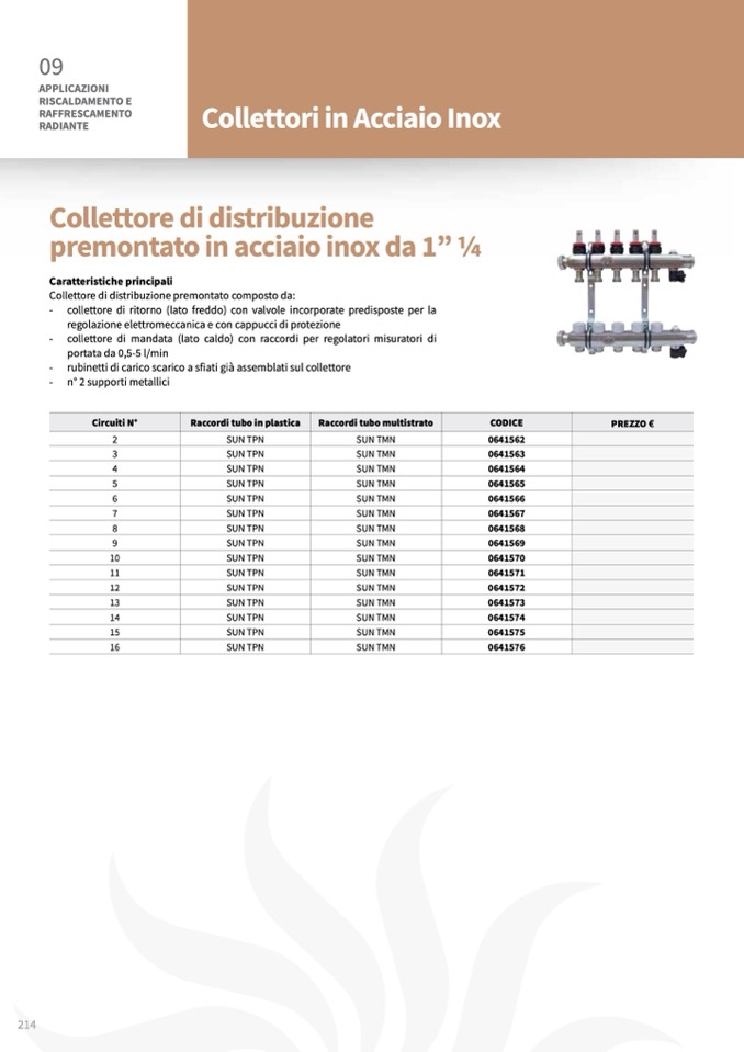 - collettore di ritorno (lato freddo) con valvole incorporate predisposte per la