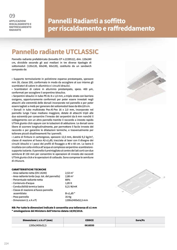 Pannello radiante prefabbricato (brevetto EP n.2239512), dim. 120x240