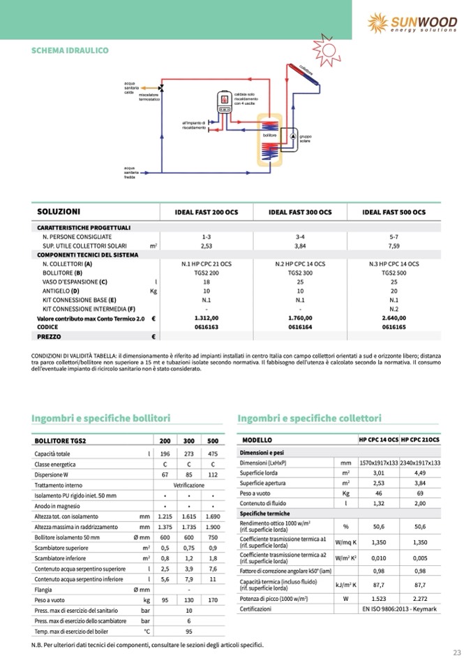 À TABELLA: il dimensionamento è riferito ad impianti installati in centro Italia con campo collettori orientati a sud e orizzonte libero; distanza