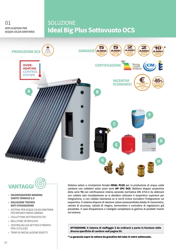 Sistema solare a circolazione forzata IDEAL PLUS per la produzione di acqua calda
