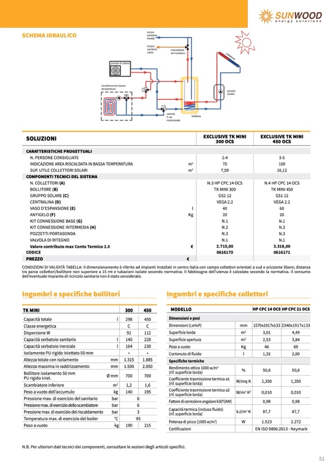 À TABELLA: il dimensionamento è riferito ad impianti installati in centro Italia con campo collettori orientati a sud e orizzonte libero; distanza