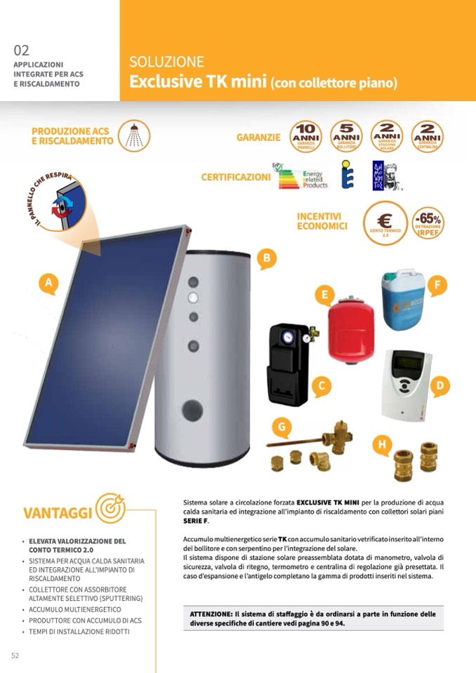 Sistema solare a circolazione forzata EXCLUSIVE TK MINI per la produzione di acqua
