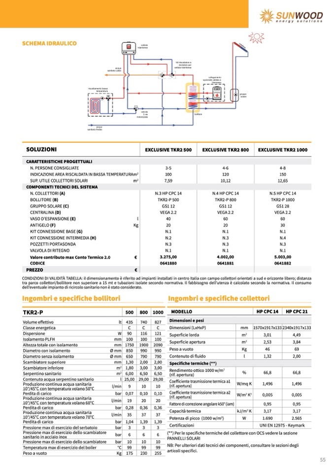 À TABELLA: il dimensionamento è riferito ad impianti installati in centro Italia con campo collettori orientati a sud e orizzonte libero; distanza