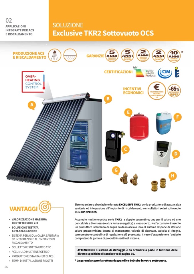 Sistema solare a circolazione forzata EXCLUSIVE TKR2 per la produzione di acqua calda