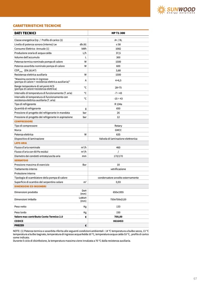 NOTE: (1) Potenza termica e assorbita riferita alle seguenti condizioni ambientali : 14 °C temperatura a bulbo secco, 13 °C